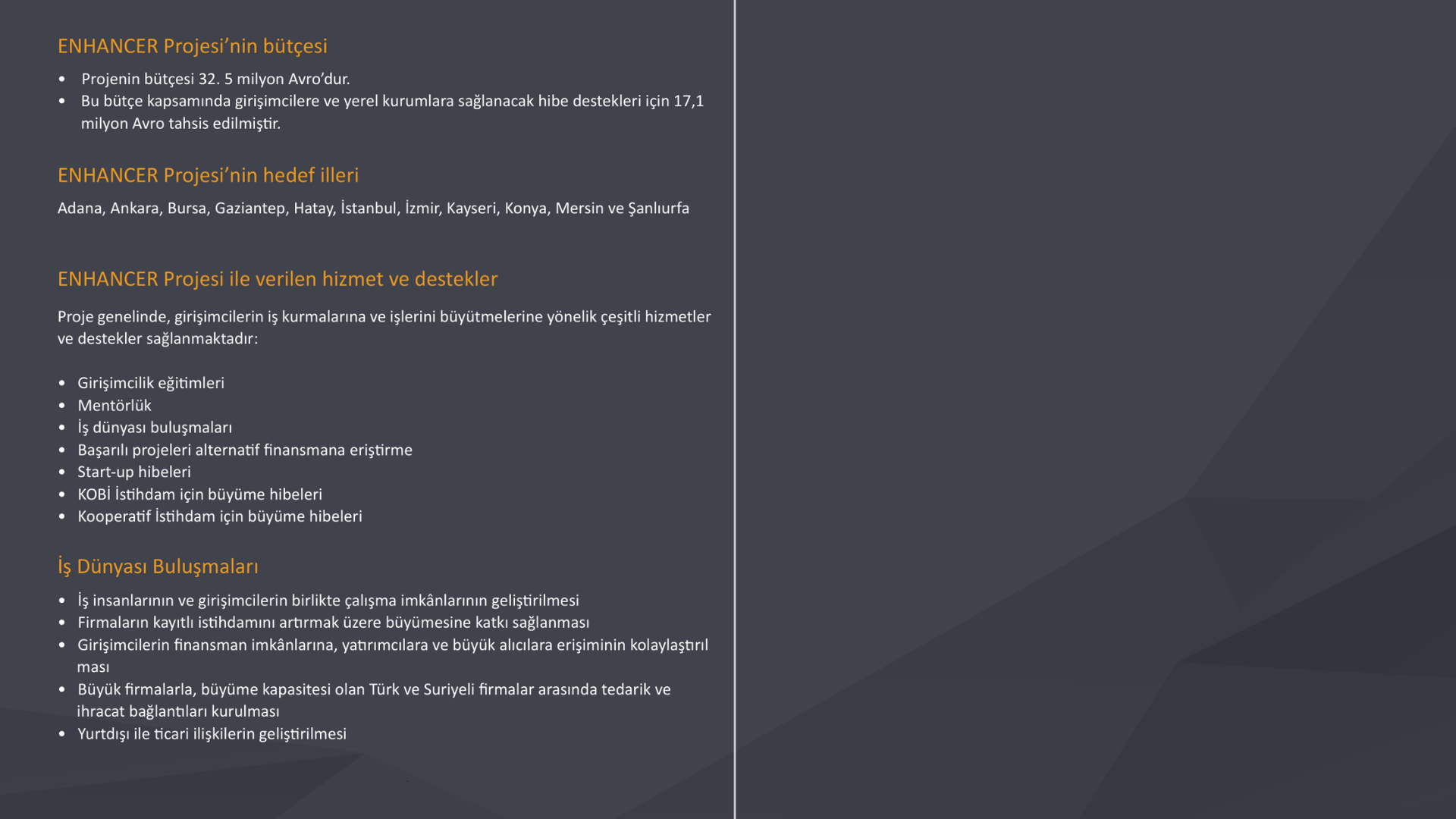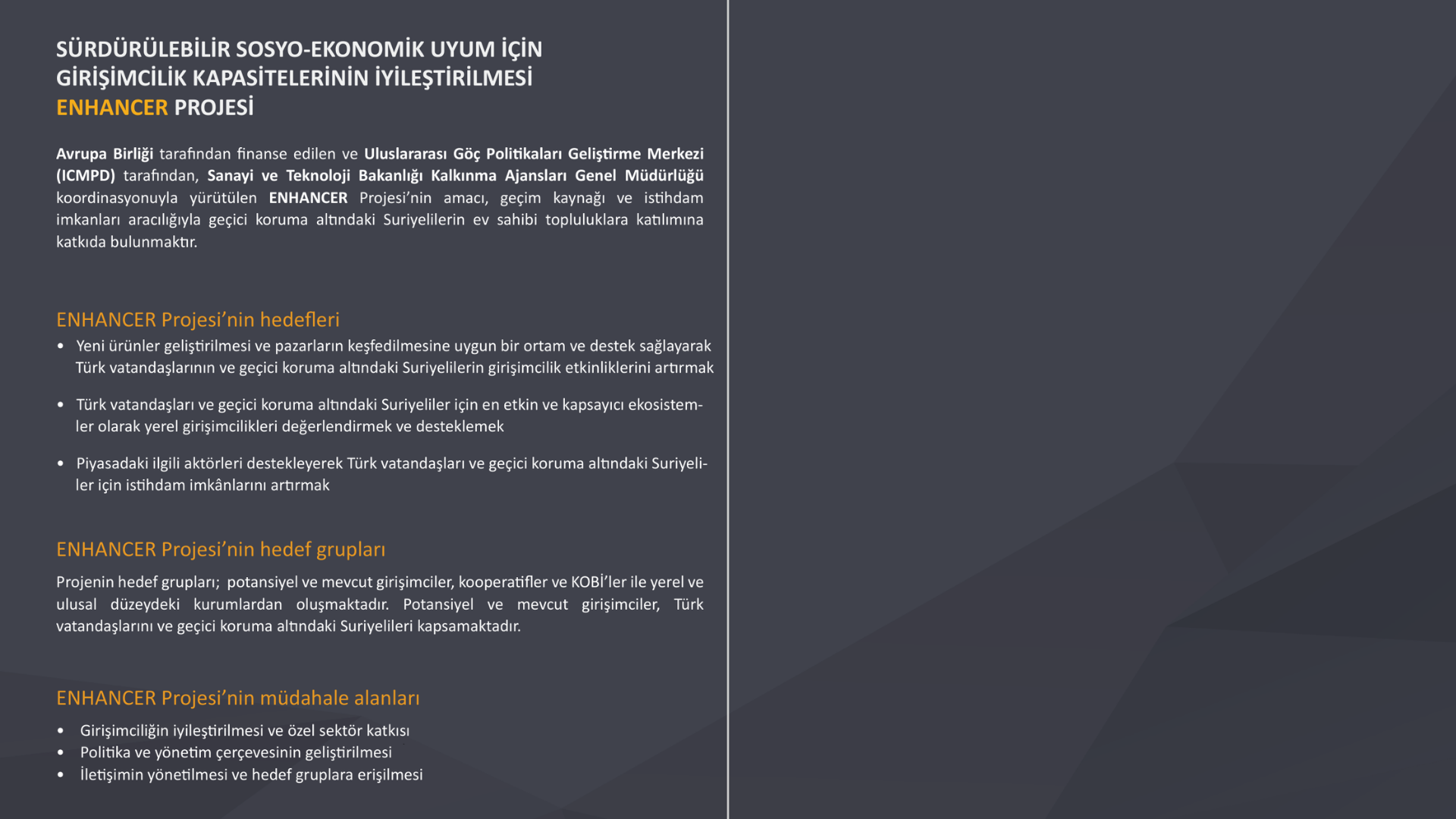İlgili kamu kurumları, girişimci merkezleri, teknokentler, OSB’ler, iş STKları gibi ekosistem kurumları